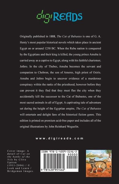 Originally published in 1888, "The Cat of Bubastes" is one of G. A. Henty's most popular historical novels which takes place in ancient Egypt on or around 1250 BC. When the Rebu nation is conquered by the Egyptians and their king is killed, the young prince Amuba is carried away as a captive to Egypt, along with his faithful charioteer, Jethro. In the city of Thebes, Amuba becomes the servant and companion to Chebron, the son of Ameres, high priest of Osiris. Amuba and Jethro begin to uncover evidence of a murderous conspiracy within the ranks of the priesthood, however before they can prevent it they find that they must flee the city when they accidentally kill the successor to the Cat of Bubastes, one of the most sacred animals in all of Egypt. A captivating tale of adventure set during the height of the Egyptian empire, "The Cat of Bubastes" will entertain and delight fans of the historical fiction genre. This edition is printed on premium acid-free paper and includes all of the original illustrations by John Reinhard Weguelin.