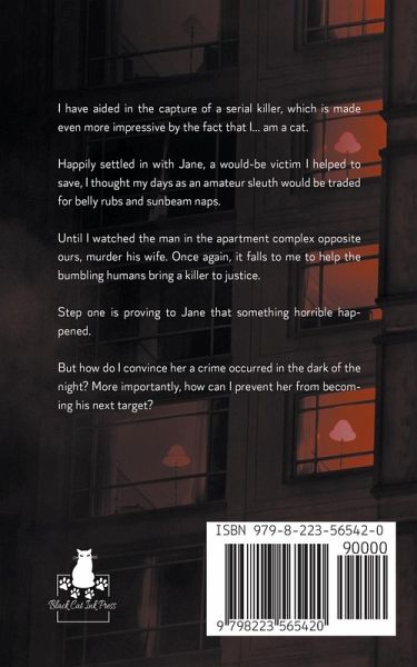 I have aided in the capture of a serial killer, which is made even more impressive by the fact that I... am a cat. Happily settled in with Jane, a would-be victim I helped to save, I thought my days as an amateur sleuth would be traded for belly rubs and sunbeam naps. Until I watched the man in the apartment complex opposite ours, murder his wife. Once again, it falls to me to help the bumbling humans bring a killer to justice. Step one is proving to Jane that something horrible happened. But how do I convince her a crime occurred in the dark of the night? More importantly, how can I prevent her from becoming his next target?