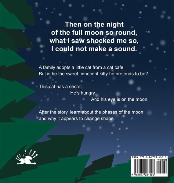 Then on the night of the full moon so round, what I saw shocked me so, I could not make a sound. A family adopts a little cat from a cat cafe. But is he the sweet, innocent kitty he pretends to be? This cat has a secret. He's hungry. And his eye is on the moon. After the story, learn about the phases of the moon and why it appears to change shape.