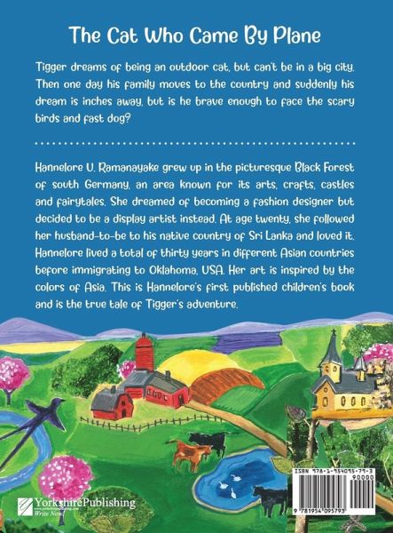 Hannelore U. Ramanyake grew up in the picturesque Black Forest of south Germany, an area known for its arts, crafts, castles and fairytales. She dreamed of becoming a fashion designer but decided to be a display artist instead. At age twenty, she followed her husband-to-be to his native country of Sri Lanka and loved it. Hannelore lived a total of thirty years in different Asian countries before immigrating to Oklahoma, USA. Her art is inspired by the colors of Asia. This is Hannelore's first published children's book and is the true tale of Tigger's adventure.
