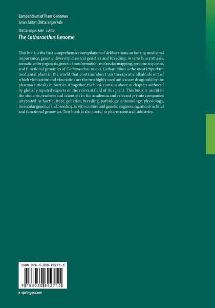This book is the first comprehensive compilation of deliberations on botany, medicinal importance, genetic diversity, classical genetics and breeding, in vitro biosynthesis, somatic embryogenesis, genetic transformation, molecular mapping, genome sequence, and functional genomics of Catharanthus roseus. Catharanthus is the most important medicinal plant in the world that contains about 130 therapeutic alkaloids out of which vinblastine and vincristine are the two highly used anticancer drugs sold by the pharmaceutically industries. Altogether, the book contains about 10 chapters authored by globally reputed experts on the relevant field of this plant. This book is useful to the students, teachers and scientists in the academia and relevant private companies interested in horticulture, genetics, breeding, pathology, entomology, physiology, molecular genetics and breeding, in vitro culture and genetic engineering, and structural and functional genomics. This book is also useful to pharmaceutical industries.
