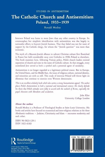 Interwar Poland was home to more Jews than any other country in Europe. Its commonplace but simplistic identification with antisemitism was due largely to nationalist efforts to boycott Jewish business. That they failed was not for want of support by the Catholic clergy, for whom the "Jewish question" was more than economic. The myth of a Masonic-Jewish alliance to subvert Christian culture first flourished in France but held considerable sway over Catholics in 1930s Poland as elsewhere. This book examines how, following Vatican policy, Polish church leaders resisted separation of church and state in the name of Catholic culture. In that struggle, every assimilated Jew served as both a symbol and a potential agent of secularity. Antisemitism is no longer regarded as a legitimate political stance. But in Europe, the United States, and the Middle East, the issues of religious culture, national identity, and minorities are with us still. This study of interwar Poland will shed light on dilemmas that