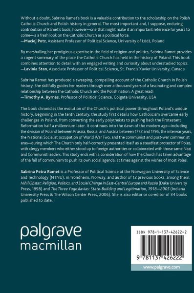 The book chronicles the evolution of the church's political power throughout Poland's unique history. Beginning in the tenth century, the study first details how Catholicism overcame early challenges in Poland, from converting the early polytheists to pushing back the Protestant Reformation half a millennium later. It continues into the dawn of the modern age-including the division of Poland between Prussia, Russia, and Austria between 1772 and 1795, the interwar years, the National Socialist occupation of World War Two, and the communist and post-war communist eras-during which The Church only half-correctly presented itself as a steadfast protector of Poles, with clergy members who either stood up to foreign authorities or collaborated with those same Nazi and Communist leaders. This study ends with a consideration of how the Church has taken advantage of the fall of communism to push its own social agenda, at times against the wishes of most Poles.