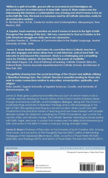 James D. Kirylo gives a personal and reflective account of what it means to be a Catholic teacher, drawing on the rich history of the Church and its inclusive nature through ecumenical, interfaith, and interreligious dialogue, along with the Church's social teachings and its link to liberation theology and a critical pedagogy in the light of faith. Recognizing teaching as a sacred vocation, Kirylo covers how faith should inform the practical matters of teaching and how these intersect with broader debates outside the classroom, including the COVID-19 pandemic, gun control, the sanctity of life, and climate change. The Catholic Teacher: Teaching for Social Justice with Faith, Hope, and Love is a book that underscores the dialectical interweaving of faith and action in the effort to foster a more just, loving, and right world.