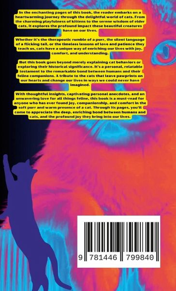 In the enchanting pages of this book, the reader embarks on a heartwarming journey through the delightful world of cats. From the charming playfulness of kittens to the serene wisdom of elder cats, it explores the profound impact these beautiful creatures have on our lives. Whether it's the therapeutic rumble of a purr, the silent language of a flicking tail, or the timeless lessons of love and patience they teach us, cats have a unique way of enriching our lives with joy, comfort, and understanding. But this book goes beyond merely explaining cat behaviors or exploring their historical significance. It's a personal, relatable testament to the remarkable bond between humans and their feline companions. A tribute to the cats that leave pawprints on our hearts and change our lives in ways we could never have imagined. With thoughtful insights, captivating personal anecdotes, and an unwavering love for all things feline, this book is a must-read for anyone who has ever found joy, companionship, and comfort in the soft purr and warm presence of a cat. Through its pages, you'll come to appreciate the deep, enriching bond between humans and cats, and the profound joy they bring into our lives.