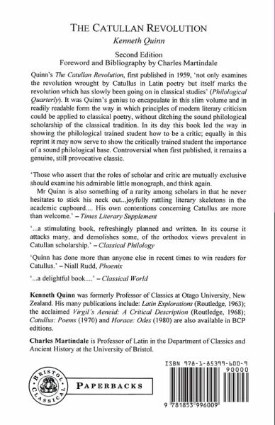 Examining the revolution wrought by Catullus in Latin poetry, this volume encapsulates the way in which principles of modern literary criticism could be applied to classical poetry, without ditching the sound philological scholarship of the classical tradition. In its day this book led the way in showing the philogically trained student how to be a critic; equally it can show the critically trained student the importance of a sound philogical base today.