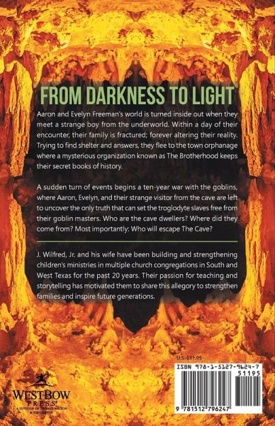 Aaron and Evelyn Freemans world is turned inside out when they meet a strange boy from the underworld. Within a day of their encounter, their family is fractured; forever altering their reality. Trying to find shelter and answers, they flee to the town orphanage where a mysterious organization known as The Brotherhood keeps their secret books of history. A sudden turn of events begins a ten-year war with the goblins, where Aaron, Evelyn, and their strange visitor from the cave are left to uncover the only truth that can set the troglodyte slaves free from their goblin masters. Who are there cave dwellers? Where did they come from? Most importantly: Who will escape The Cave?