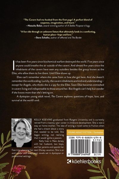 It has been five years since biochemical warfare destroyed the world. Five years since anyone could breathe the air outside of the cavern. And almost five years since the inhabitants of the cavern have seen any outsiders besides the group known as the Elite, who allow them to live there. Until Elsie shows up. Elsie can't remember where she came from or how she got here. And she doesn't remember the world ending. Luckily, the cavern inhabitants are kind and understanding-except for Angelo, who thinks she is a spy for the Elite. Soon Elsie becomes enmeshed in cavern living and indispensable to those around her. But Angelo can't help but wonder if she knows more than she's letting on. A dystopian young adult novel, The Cavern explores questions of hope, love, and survival at the world's end.