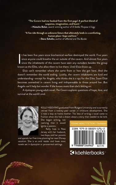 It has been five years since biochemical warfare destroyed the world. Five years since anyone could breathe the air outside of the cavern. And almost five years since the inhabitants of the cavern have seen any outsiders besides the group known as the Elite, who allow them to live there. Until Elsie shows up. Elsie can't remember where she came from or how she got here. And she doesn't remember the world ending. Luckily, the cavern inhabitants are kind and understanding-except for Angelo, who thinks she is a spy for the Elite. Soon Elsie becomes enmeshed in cavern living and indispensable to those around her. But Angelo can't help but wonder if she knows more than she's letting on. A dystopian young adult novel, The Cavern explores questions of hope, love, and survival at the world's end.