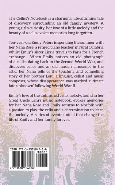 'The Cellist's Notebook' is a charming, life-affirming tale of discovery surrounding an old family mystery. A young girl's curiosity, her love of a little melody and the beauty of a cello evokes memories long forgotten. Set in the present day, ten year old Emily Peters is spending the summer with her Nana Rose, a retired piano teacher, in rural Cumbria whilst Emily's sister Lizzie travels to Paris for a French exchange. When Emily notices an old photograph of a cellist dating back to the Second World War, and discovers cellos and an old music manuscript in the attic, her Nana tells of the…mehr