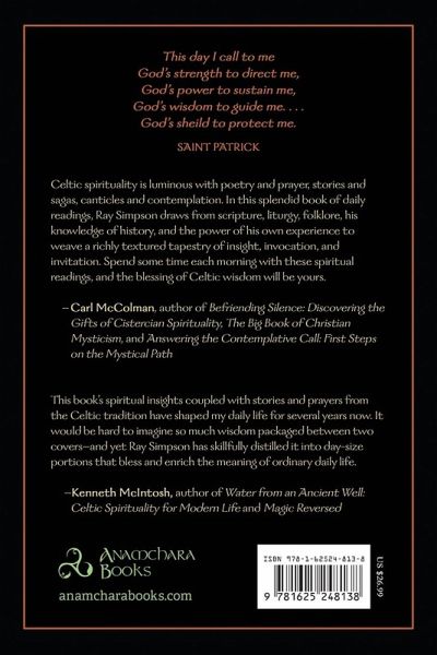 The ancient Celts found God's presence in each ordinary moment of the day. Everything they encountered revealed to them the presence of the sacred; each day was deep with meaning. Now you too can practice the Celts' faith, as you take a few moments to immerse yourself in their wisdom. These small daily moments of reflection and insight will open your heart to each day and all it holds. This day I call to me God's strength to direct me, God's power to sustain me, God's wisdom to guide me. . . . God's sheild to protect me. (Saint Patrick) Celtic spirituality is luminous with poetry and prayer, stories and sagas, canticles and contemplation. In this splendid book of daily readings, Ray Simpson draws from scripture, liturgy, folklore, his knowledge of history, and the power of his own experience to weave a richly textured tapestry of insight, invocation, and invitation. Spend some time each morning with these spiritual readings, and the blessing of Celtic wisdom will be yours. -Carl McColman, author of Befriending Silence: Discovering the Gifts of Cistercian Spirituality, The Big Book of Christian Mysticism, and Answering the Contemplative Call: First Steps on the Mystical Path This book's spiritual insights coupled with stories and prayers from the Celtic tradition have shaped my daily life for several years now. It would be hard to imagine so much wisdom packaged between two covers-and yet Ray Simpson has skillfully distilled it into day-size portions that bless and enrich the meaning of ordinary daily life. -Kenneth McIntosh, author of Water from an Ancient Well: Celtic Spirituality for Modern Life and Magic Reversed