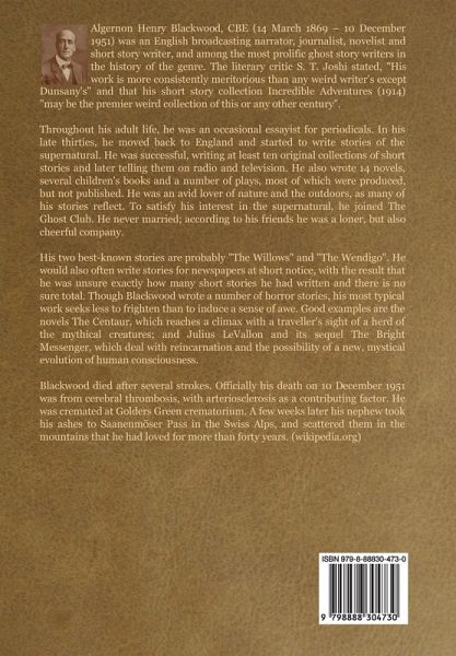 A healthy dose of Victorian meta physics outlines this story of a man's spiritual awakening after he meets a mysterious man and boy aboard a steamer ship touring the Greek isles. Always well written with beautiful prose... (Robert Williams) About the author Algernon Henry Blackwood, CBE (14 March 1869 - 10 December 1951) was an English broadcasting narrator, journalist, novelist and short story writer, and among the most prolific ghost story writers in the history of the genre. The literary critic S. T. Joshi stated, "His work is more consistently meritorious than any weird writer's except Dunsany's" and that his short story collection Incredible Adventures (1914) "may be the premier weird collection of this or any other century". Throughout his adult life, he was an occasional essayist for periodicals. In his late thirties, he moved back to England and started to write stories of the supernatural. He was successful, writing at least ten original collections of short stories and later telling them on radio and television. He also wrote 14 novels, several children's books and a number of plays, most of which were produced, but not published. He was an avid lover of nature and the outdoors, as many of his stories reflect. To satisfy his interest in the supernatural, he joined The Ghost Club. He never married; according to his friends he was a loner, but also cheerful company. His two best-known stories are probably "The Willows" and "The Wendigo". He would also often write stories for newspapers at short notice, with the result that he was unsure exactly how many short stories he had written and there is no sure total. Though Blackwood wrote a number of horror stories, his most typical work seeks less to frighten than to induce a sense of awe. Good examples are the novels The Centaur, which reaches a climax with a traveller's sight of a herd of the mythical creatures; and Julius LeVallon and its sequel The Bright Messenger, which deal with reincarnation and the possibility of a new, mystical evolution of human consciousness. Blackwood died after several strokes. Officially his death on 10 December 1951 was from cerebral thrombosis, with arteriosclerosis as a contributing factor. He was cremated at Golders Green crematorium. A few weeks later his nephew took his ashes to Saanenmöser Pass in the Swiss Alps, and scattered them in the mountains that he had loved for more than forty years. (wikipedia.org)