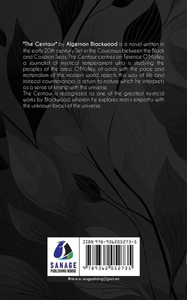 ""The Centaur"" by Algernon Blackwood is a novel written in the early 20th century. Set in the Caucasus between the Black and Caspian Seas, The Centaur centres on Terence O'Malley, a journalist of mystical temperament who is studying the peoples of the area. O'Malley, at odds with the pace and materialism of the modern world, rejects this way of life and instead countenances a return to nature which he interprets as a sense of kinship with the universe. The Centaur is recognized as one of the greatest mystical works by Blackwood, wherein he explores man's empathy with the unknown forces of the universe.