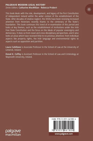 1. Introduction.- 2. The 1922 Constitution; Constituting a Polity.- 3. The Partition of Ireland and the 1922 Constitution.- 4. 'The Supreme Legislative Authority Speaking as The Mouthpiece of the People': Constituent Power and the Irish Free State.- 5. Opposition to the Constitution of the Irish Free State in 1922.- 6. The Representative of the Crown and the Governor-General of the Irish Free State: Text and Context.- 7. The National Language and Article 4 of the 1922 Constitution.- 8. A new Constitution; a new language? How the new Courts talked about the Free State Constitution 1922.- 9. 'Environmental Stewardship' and Article 11 of the 1922 Constitution.- 10. The 1922 Constitution as a failed attempt to break with Westminster tradition.- 11. Property Rights and Democratic Decision-Making: Lessons from the 1922 Constitution.- 12. The Civil War, the Constitution and the Collapse of the Rule of Law.- 13. Amending the 1922Constitution: how the process shaped the politics of a new state.- 14. What the drafters learnt in 1937 from the 1922 experience.- 15. The Afterlife of the Constitution of the Irish Free State: Constitutional Echoes in South Asia.