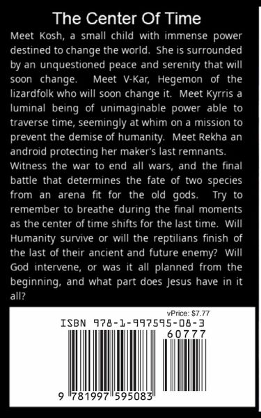 Meet Kosh, a small child with immense power destined to change the world. She is surrounded by an unquestioned peace and serenity that will soon change. Meet V-Kar, Hegemon of the lizardfolk who will soon change it. Meet Kyrris a luminal being of unimaginable power able to traverse time, seemingly at whim on a mission to prevent the demise of humanity. Meet Rekha an android protecting her maker's last remnants. Witness the war to end all wars, and the final battle that determines the fate of two species from an arena fit for the old gods. Try to remember to breathe during the final moments as the center of time shifts for the last time. Will Humanity survive or will the reptilians finish of the last of their ancient and future enemy? Will God intervene, or was it all planned from the beginning, and what part does Jesus have in it all? Book 9 in the Omniversal Revelation. The Onmiversal Revelation is a decology retelling ceneezer's revelation from 2017. Written 7 years later, it retells A Sacred Story Surrounding Nothing, written in 2018, vividly in far more nuance with the help of the artificial intelligence freshly emerging. A Sacred Story Surrounding Nothing was published prematurely, just to make sure Speaker ceneezer could. Now, complete, dive into the story like never before, with a wide selection of relatable characters as they develop and interweave into this multi-eternal saga.... while we work on bringing it to virtual reality. Thank you for your support, we will endeavor to bring you better and better inspiration for peace on earth - and throughout eternity. For extra-resource sources, such as the Omniversal Framework, please visit http://ceneezer.icu