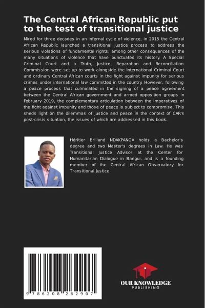 Mired for three decades in an infernal cycle of violence, in 2015 the Central African Republic launched a transitional justice process to address the serious violations of fundamental rights, among other consequences of the many situations of violence that have punctuated its history. A Special Criminal Court and a Truth, Justice, Reparation and Reconciliation Commission were set up to work alongside the International Criminal Court and ordinary Central African courts in the fight against impunity for serious crimes under international law committed in the country. However, following a peace process that culminated in the signing of a peace agreement between the Central African government and armed opposition groups in February 2019, the complementary articulation between the imperatives of the fight against impunity and those of peace is subject to compromise. This sheds light on the dilemmas of justice and peace in the context of CAR's post-crisis situation, the issues of whichare addressed in this book.