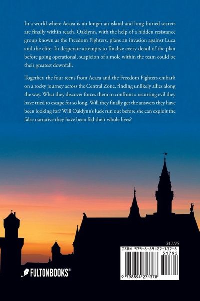 In a world where Aeaea is no longer an island and long-buried secrets are finally within reach, Oaklynn, with the help of a hidden resistance group known as the Freedom Fighters, plans an invasion against Luca and the elite. In desperate attempts to finalize every detail of the plan before going operational, suspicion of a mole within the team could be their greatest downfall. Together, the four teens from Aeaea and the Freedom Fighters embark on a rocky journey across the Central Zone, finding unlikely allies along the way. What they discover forces them to confront a recurring evil they have tried to escape for so long. Will they finally get the answers they have been looking for? Will Oaklynn's luck run out before she can exploit the false narrative they have been fed their whole lives?