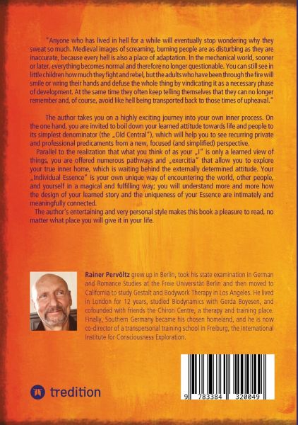 This book helps you to get to know yourself in a fundamental yet concentrated and simple way. You can simply read it or you can engage with it. With the help of numerous "exercitii", you are repeatedly invited to observe and experience yourself from two perspectives.On the one hand, there is your learned story, which began early in your life and with which you began to adapt in order to be loved or at least tolerated. It has something of an inner atmosphere that has become a habit for you and that determines your everyday life in a somewhat mechanical way, constantly repeating itself. This inner atmosphere helped you as a child to maintain your place in the family, but the older you get, the more it becomes an obstacle to you living your other side, namely your radiance, your Essence, your actual individual nature. Whenever you have the feeling that "this can't be all there is," something in you remembers this forgotten and buried erotic power.Such a dichotomy can be found in many psychological and spiritual teachings. The special feature of this book is that both sides are brought together to a central denominator. A simple red thread runs through both your learned story and your "Essence", which accounts for your unmistakable individuality on both sides. You have not learned to perceive it, because complexity and confusion almost always have a preserving and stabilizing function in the old story.The book invites you on a journey that can increasingly bring you into contact with the simple, constantly recurring basic formula of how you create pain, fear and suffering in your life. At the same time, the ability to "remember" your splendor and radiance may become stronger and stronger within you, opening the doors to a different perspective in which an unfamiliar lightness and joy form the basis of your life.However, all of this will only happen if the desire to come home to yourself is stronger than the mechanical compulsion to maintain your usual daily routine. The book is an invitation, but not a promise.