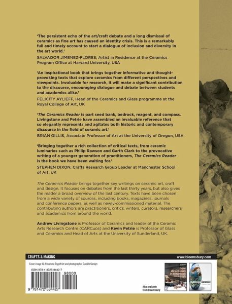 The Ceramics Reader is an impressive editorial collection of essays and text extracts, covering every discipline within ceramics, past and present. Tackling such fundamental questions as "why are ceramics important?", the book also considers the field from a range of perspectives - as a cultural activity or metaphor, as a vehicle for propaganda, within industry and museums, and most recently as part of the 'expanded field' as a fine art medium and hub for ideas. Newly commissioned material features prominently alongside existing scholarship, to ensure an international and truly comprehensive look at ceramics.