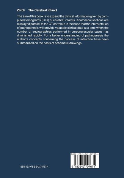 The aim of this book is to expand the clinical information given by computed tomograms (CTs) of cerebral infarcts. Anatomical sections are displayed parallel to the CT correlate in the hope that the interpretation of pathogenesis will provide valuable clinical data at a time when the number of angiographies performed in cerebrovascular cases has diminished rapidly. For better understanding of pathogenesis our concepts concerning the process of infarction have been summarized on the basis of schematic draw ings. K.-J. ZULCH KOln Acknowledgments I am most grateful to Professor Hoeffk:en for permission to use computed tomograms from his institution, to Herr GOldner and Frau Miihlhover for their technical assistance, and to Frau Goldner for help during the editorial work. My particular thanks go to my friend Professor W.S. Fields, Houston, who undertook the great burden of styling the English text. My gratitude is expressed to Dr. Dr. h.c. multo Heinz Gotze and Springer Verlag for the excellent layout and quality of this book.