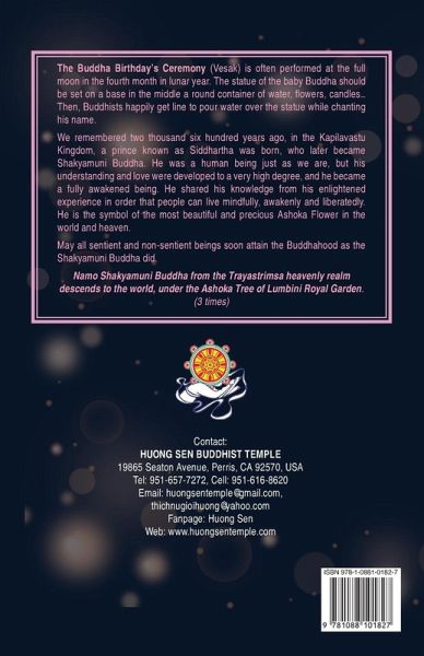 Every day Nuns and Buddhists at H¿¿ng Sen Buddhist Temple, California, USA, have practiced and recited following the Vietnamese scripture, "Nghi L¿ Hàng Ngày - 50 Kinh T¿ng và các L¿ Vía trong N¿m" (Daily Chanting - Fifty Discourses and Annual Festivals) of the Pureland Sect, which was composed in 2021 by Bhikkhun¿ Thích N¿ Gi¿i H¿¿ng. It is based on the original ritual of her late Master, the Venerable Elder H¿i Tri¿u Âm at Liên Hoa Temple and D¿¿c S¿ Temple. Since many Vietnamese-Americans, Hispanic, native Americans, and English speakers have come to Huong Sen Temple in search of practice and ritual, Bhikkhun¿ Gi¿i H¿¿ng composed an English version of DAILY MONASTIC CHANTING. It encompasses 16 popular rituals to serve the spiritual needs of any Buddhist sect, including the Pure Land and Meditation Traditions as below:Practice Meditation The Ceremony for Peace The Rice Offering to Buddhas The Lunch Offering at the Dining Hall The Ritual Offering Food To Hungry Ghosts The Pureland Course of Amitabha Sutra The Medicine Buddha Sutra The New Year Ceremony The Great Parinirvana Ceremony The Buddha's Birthday Ceremony The Ullambana Festival (Parents' Day) The Marriage Ceremony The Blessing Ceremony for The Deceased The Ancestral Ceremony The Enlightened Buddha Ceremony The Uposatha Ceremony (Reciting Precepts) With regard to mindful chanting, we take sources from the sacred book, Chanting from the Heart: Buddhist Ceremonies and Daily Practices of Thích Nh¿t H¿nh. In the field of the Pureland School, we have taken material from the above Vietnamese scripture, "Nghi L¿ Hàng Ngày," and translated it into English. We should chant at least once a week, any place and any time, or more often if we have more time. The chant will help to avoid negative thoughts, defilements, distractions -any of the myriad things that intrude into the one-pointed mind. We definitely feel the connectedness with Dharma (the Buddha's teaching), we feel the spirit being lifted up, the awakening and the settling of the mind to enter meditation. We will become bright, enduring, detached, diligent, generous, loving, understanding and so on . . . because we practice following the chanting and the role model of Buddhas. Chanting out loud or silently listening to chanting can also be very relaxing as we go about our day. It can be used to calm our mind before work or sleeping. For the sake of all the general practitioners, there are some changes, combinations, additions, reductions, and creations made in this English version. This is the first time that both traditions have been combined in an English version for the necessary needs at Huong Sen Buddhist Temple. We would like to gratefully acknowledge with special thanks the Buddhas, Boddhisattvas, Sanghas, the English translators, Master Thích Nh¿t H¿nh, our Late Respectful Teacher - Venerable Elder Bhikkhun¿ H¿i Tri¿u Âm and others. You all provided us the awakening words to remind and guide us in the right way of practice. We will keep chanting, learning and practicing it until we and all beings get the enlightenment as well as realize our Buddha nature. If there is any merit in compiling this book, may it be shared with all sentient beings. May they diligently practice and soon gain the way of love and understanding. Reciting the sutras, practicing the way of awareness gives rise to benefits without limit. We vow to share the fruits with all beings. We vow to offer tribute to parents, teachers, friends, and numerous beings who give guidance and support along the path. (Thích Nh¿t H¿nh) H¿¿ng Sen Temple, California March 15, 2023 Bhikkhun¿ TN Gi¿i H¿¿ng