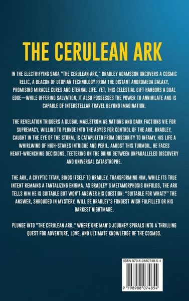 ¿Dive into the electrifying saga of "The Cerulean Ark," where the fate of the universe hangs in the balance. Follow the story of Bradley Adamsson, an ordinary individual who stumbles upon an extraordinary cosmic relic. This beacon of Utopian technology, originating from the distant Andromeda Galaxy, promises nothing short of miracle cures and the secret to eternal life. However, this celestial gift is a double-edged sword-it has the power not only to save but also to destroy, harboring capabilities for interstellar travel that defy imagination. The discovery of the Ark ignites a global frenzy, as nations and hidden factions clash in a ruthless race for dominance. In the midst of this chaos, Bradley finds himself thrust from the shadows into the glaring spotlight, navigating a treacherous path filled with danger, conspiracy, and betrayal. As the world teeters on the edge of the abyss, Bradley is forced to make decisions that could either lead to groundbreaking revelations or usher in an era of unprecedented destruction. Bound to the Ark, Bradley undergoes a transformation that intertwines his destiny with that of the universe. Haunted by the Ark's cryptic messages and its unsettling claim that he is "suitable," Bradley is driven to uncover the truth behind these enigmatic words. But the answers he seeks may bring him face to face with his greatest fears. "The Cerulean Ark" is not just a story; it's an adventure that spirals into the depths of love, courage, and the unknown. Embark on this thrilling journey with Bradley and discover what lies beyond the stars-where the quest for knowledge meets the heart's deepest desires.