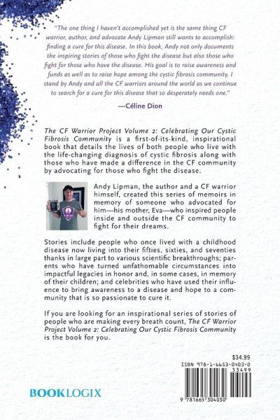 The CF Warrior Project, Volume 2: Celebrating Our Cystic Fibrosis Community is a first-of-its-kind, inspirational book that details the lives of both people who live with the life-changing diagnosis of cystic fibrosis along with those who have made a difference in the CF community by advocating for those who fight the disease. Andy Lipman, the author and a CF warrior himself, created this series of memoirs in memory of someone who advocated for him-his mother, Eva-who inspired people inside and outside the CF community to fight for their dreams. Stories include people who once lived with a childhood disease now living into their fifties, sixties, and seventies thanks in large part to various scientific breakthroughs; parents who have turned unfathomable circumstances into impactful legacies in honor and, in some cases, in memory of their children; and celebrities who have used their influence to bring awareness to a disease and hope to a community that is so passionate to cure it. If you are looking for an inspirational series of stories of people who are making every breath count, The CF Warrior Project, Volume 2: Celebrating Our Cystic Fibrosis Community is the book for you.