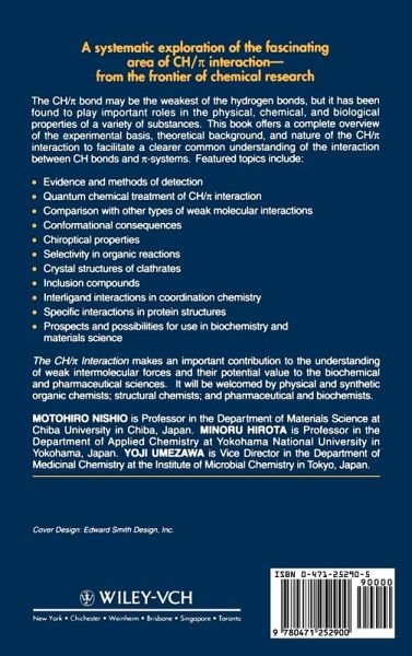 Evidence and Methods of Detection. Quantum-Mechanical Treatment of CH- Interaction. Comparison with Other Types of Weak Molecular Interactions. Conformational Consequences. Chiroptical Properties. Selectivity in Organic Reactions. Crystal Structures of Clathrates. Inclusion Compounds. Interligand Interactions in Coordination Chemistry. Specific Interactions in Protein Structures. Summary and Prospects. Index.