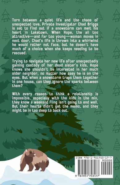 Torn between a quiet life and the chaos of unexpected love, Private Investigator Chad Briggs is set to find out if a snowstorm can melt his heart in Laketown. When Hope, the all too attractive-and far too young-woman next door, Chad's life is thrown into a whirlwind he would rather not face, but he doesn't have much of a choice. Trying to navigate her new life after unexpectedly gaining custody of her dead sister's kids, Hope knows she shouldn't be interested in her much older neighbor, no matter how easy he is on the eyes. But when a snowstorm traps them together in one house, can they ignore the sparks between them? With every reason to think a relationship is impossible, especially with the kids in the mix, they know a weekend fling isn't going to end well. But their hearts didn't get the memo, and they might be in too deep to back out. Books in the Love in Sun City series are tied together and overlap but can be read in any order or as standalones. They contain minimal to no swearing and no explicit content.