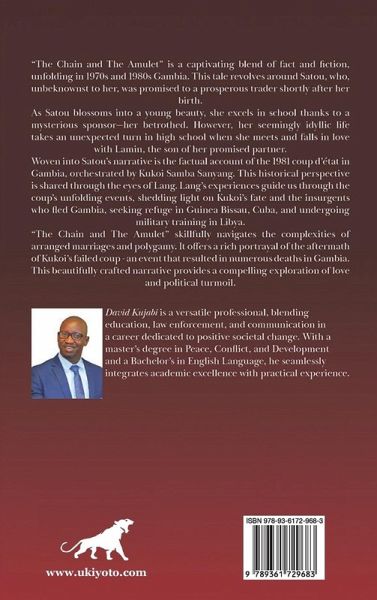 "The Chain and The Amulet" is a captivating blend of fact and fiction, unfolding in 1970s and 1980s Gambia. This tale revolves around Satou, who, unbeknownst to her, was promised to a prosperous trader shortly after her birth. As Satou blossoms into a young beauty, she excels in school thanks to a mysterious sponsor-her betrothed. However, her seemingly idyllic life takes an unexpected turn in high school when she meets and falls in love with Lamin, the son of her promised partner. Woven into Satou's narrative is the factual account of the 1981 coup d'état in Gambia, orchestrated by Kukoi Samba Sanyang. This historical perspective is shared through the eyes of Lang. Lang's experiences guide us through the coup's unfolding events, shedding light on Kukoi's fate and the insurgents who fled Gambia, seeking refuge in Guinea Bissau, Cuba, and undergoing military training in Libya. "The Chain and The Amulet" skillfully navigates the complexities of arranged marriages and polygamy. It offers a rich portrayal of the aftermath of Kukoi's failed coup - an event that resulted in numerous deaths in Gambia. This beautifully crafted narrative provides a compelling exploration of love and political turmoil.