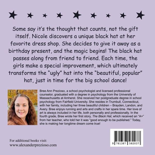 Some say it's the thought that counts, not the gift itself. Nicole discovers a unique black hat at her favorite dress shop. She decides to give it away as a birthday present, and the magic begins! The black hat passes along from friend to friend. Each time, the girls make a special improvement, which ultimately transforms the "ugly" hat into the "beautiful, popular" hat, just in time for the big school dance!