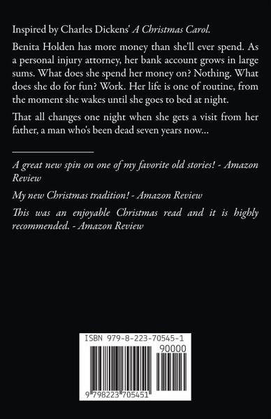 Inspired by Charles Dickens A Christmas Carol. Benita Holden has more money than she'll ever spend. As a personal injury attorney, her bank account grows in large sums. What does she spend her money on? Nothing. What does she do for fun? Work. Her life is one of routine, from the moment she wakes until she goes to bed at night. That all changes one night when she gets a visit from her father, a man who's been dead seven years now...