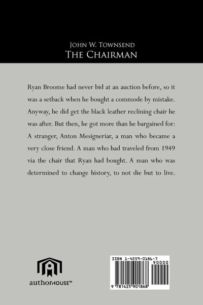 Ryan Broome had never bid at an auction before, so it was a setback when he bought a commode by mistake. Anyway, he did get the black leather reclining chair he was after. But then, he got more than he bargained for: A stranger, Anton Mesigneriar, a man who became a very close friend. A man who had traveled from 1949 via the chair that Ryan had bought. A man who was determined to change history, to not die but to live.