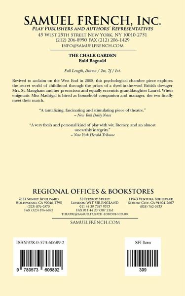 "This psychological chamber piece explores the secret world of childhood through the prism of a dyed-in-the-wool British dowager Mrs. St. Maugham and her precocious and equally eccentric granddaughter Laurel. When enigmatic Miss Madrigal is hired as household companion and manager, the two finally meet their match"--Amazon.com.