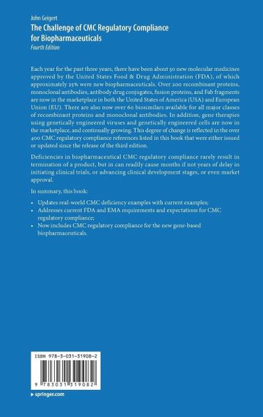 Updates real-world CMC deficiency examples with current examples;Addresses current FDA and EMA requirements and expectations for CMC regulatory compliance;Now includes CMC regulatory compliance for the new gene-based biopharmaceuticals.