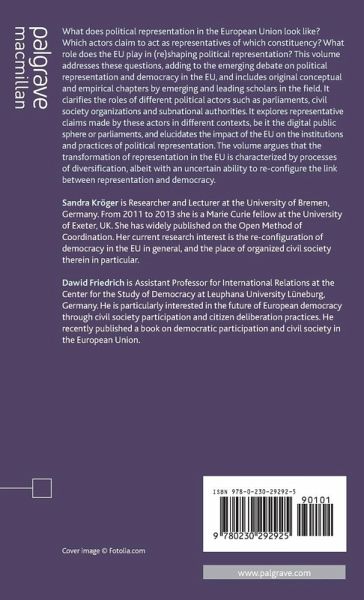 What does political representation in the European Union look like? This volume argues that the transformation of representation in the EU is characterized by diversification processes, albeit with an uncertain ability to re-configure the link between representation and democracy.