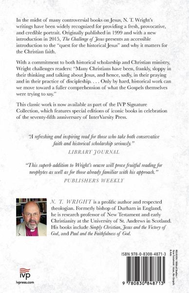 N. T. Wright's lectures and writings have been widely recognized for providing a fresh, provocative, and credible portrait of Jesus. This classic work is now available as part of the IVP Signature Collection, presenting an accessible introduction to the quest for the historical Jesus and why it matters for the Christian faith.