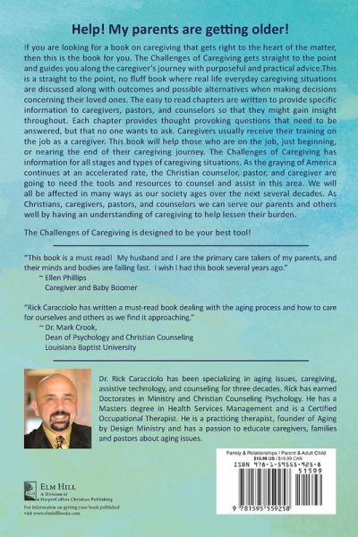 Man's perception, and how to accept aging, has not changed dramatically since the beginning of time or over the last 220 years as man's life expectancy has increased. Man is not a stagnant being, and as Bathauer notes, "Psychologist tell us that all of life is made up of continuous changes from childhood all the way to old age." The last twenty years of life, the stage we call old age, brings about almost as many changes as the first twenty years. Changes in the latter part of life are usually more than all the changes during the first twenty years of life because they carry the threat of loss, disability or other degenerative conditions. Christian counselors are trained in the spiritual and general mental health aspects of aging. Caregivers and family members usually receive their training on the job as a caregiver. As the graying of America continues at an accelerated rate, the Christian counselor, pastor, and caregiver are going to need the tools and resources to counsel and assist in this area. Aging will be an area, which expands into additional areas that will affect everyone in some manner. The Christian counselor, pastor, and caregiver can benefit both professionally and personally by having an understanding of what caregiving is and is not. Also having the knowledge of where to retrieve useable and beneficial information is a blessing to all. It helps to reassure that all involved during this very stressful time period and when major decisions might need to be made to know that there is applicable information at hand. By having this knowledge, it will allow the counselor and caregiver to truly get a better understanding of the aging person. He is now able to help in a spiritual, mental and physical dimension. Again, it is not expected that the counselor, pastor, and caregiver will become a specialist in aging or a gerontologist. The expectation is that the reader will find helpful information as a caregiver and counselor. References 1 Ruth M. Bathauer, Parent Care: Fear and Losses of the Elderly (Ventura, CA: Regal Books, 1990), 32. 2 L. Gelhaus, "Boomers Prefer Aging at Home," Provider, 2004, 12-15.