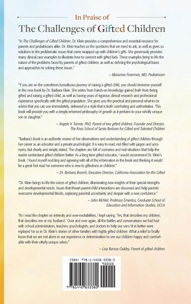 Educating and raising gifted children presents highly specific challenges. This book explains how parents can learn to optimize their child's potential and work with schools, spouses, friends, and specialists to create a nurturing and stable life. Having a gifted child is a joy, but it is also one of the greatest challenges of parenthood to help that child find the right fit for education. In this remarkably insightful text, noted psychologist Barbara Klein, PhD, EdD, explains the emotional and social issues of giftedness, identifies parental actions and reactions that can exacerbate or soothe the challenges, and describes how these key factors tie in to identifying the best school and educational program to enable a gifted child to achieve his or her goals and maximize success. The text includes many vignettes from children and families who have sought guidance across 30 years from the author, an accomplished psychotherapist recognized as a national authority on raising gifted children. This single-volume work presents an understandable theoretical overview of the psychological problems parents face raising their gifted child and clearly explains why the parent-child interaction can be so intense and stressful-a reality that is rarely acknowledged in the existing literature on giftedness. Parents of gifted children will learn how to make decisions about their children's social emotional development and educational future and understand how their actions can be helpful or harmful to their gifted child and his/her education. Educators will fully grasp why and how gifted kids are different and why they need different educational environments, while mental heath professionals will gain insight into their gifted patients' emotional struggles. And gifted individuals will realize that others experience similar struggles.