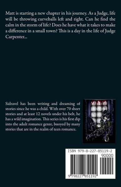 Matt is starting a new chapter in his journey. As a Judge, life will be throwing curveballs left and right. Can he find the calm in the storm of life? Does he have what it takes to make a difference in a small town? This is a day in the life of Judge Carpenter...