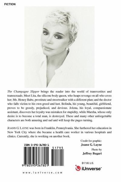 The Champagne Slipper brings the reader into the world of transvestites and transsexuals. Meet Lita, the silicone body queen, who heaps revenge on all who cross her; Ms. Honey Babe, prostitute and streetwalker with a different plan; and the doctor who falls victim to his own greed and lust. Belinda, his young, beautiful, girlfriend, proves to be greedy, prejudiced, and devious. Jolena, his loyal, compassionate assistant, discovers her loyalty was mistaken for stupidity, while Marsha, whose only desire is to become a total man, is destroyed. These and many other unforgettable characters are both amusing and sad and will keep the pages turning.