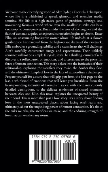 Welcome to the electrifying world of Alex Ryder, a Formula 1 champion whose life is a whirlwind of speed, glamour, and relentless media scrutiny. His life is a high-stakes game of precision, strategy, and unwavering focus-a world where even the smallest mistake can have catastrophic consequences. But amidst the roar of the engines and the flash of cameras, a quiet, unexpected connection begins to bloom. Enter Ellie, an unassuming bookstore owner whose life unfolds at a slower, gentler pace. Far removed from the high-octane drama of the racetrack, Ellie embodies a grounding stability and a warm heart that will challenge Alex's carefully constructed image and expectations. Their unlikely romance will not be a simple fairytale; it will be a thrilling journey of self-discovery, a rollercoaster of emotions, and a testament to the powerful force of human connection. This story delves into the intricacies of their relationship, exploring the sacrifices they make, the doubts they face, and the ultimate triumph of love in the face of extraordinary challenges. Prepare yourself for a story that will grip you from the first page to the last, a whirlwind of emotions that will leave you breathless. From the heart-pounding intensity of Formula 1 races, with their meticulously detailed descriptions, to the delicate tenderness of shared moments between Alex and Ellie, this novel explores the unexpected beauty of their bond. This is more than just a love story; it's a story about finding love in the most unexpected places, about facing one's fears, and ultimately, about the unyielding power of human connection. It's about the risks we take, the sacrifices we make, and the enduring strength of love that can weather any storm.