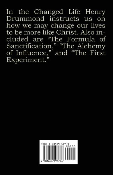 In the Changed Life Henry Drummond instructs us on how we may change our lives to be more like Christ. Also included are "The Formula of Sanctification," "The Alchemy of Influence," and "The First Experiment."