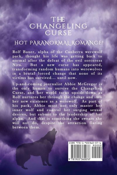 Rolf Bauer, alpha of the Canberra werewolf pack, thought his life was getting back to normal after the defeat of the evil sorceress Nira. But a new curse has appeared, transforming random humans into werewolves in a brutal forced change that none of its victims has survived... until now. Up-and-coming journalist Abbie McGregor is the only human to survive the Changeling Curse, and her world turns upside-down as Rolf nurtures her through the change and into her new existence as a werewolf. As part of his pack, Abbie must not only master her inner wolf and control her surging sexual desires, but submit to the leadership of her alpha. And that is something she swears she will not do, despite the attraction flaring between them. As they hunt the sorcerer behind the new curse Abbie pushes Rolf to the edge, challenging him to explore his hunger for power and for love. And Rolf must guide and protect the headstrong Abbie, the only one who knows their enemy's scent and can track him down... unless he kills them both first!