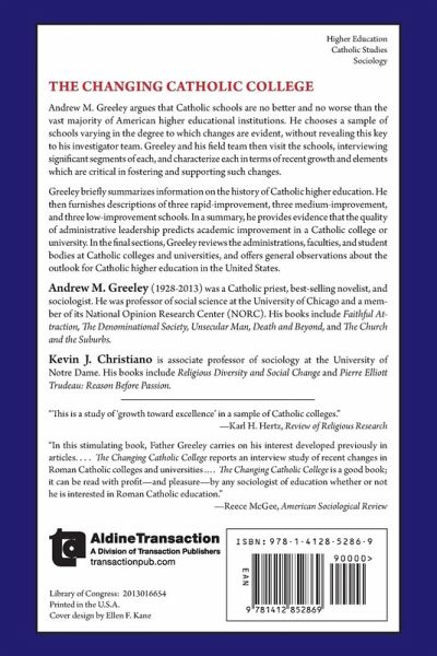 Almost all of America's private colleges and universities started out as denominational schools, but connections with sponsoring churches gradually attenuated over the last century. Only fundamentalist Protestant denominations and the Roman Catholic Church still maintain colleges and universities closely tied to the spirit of their denominations. Catholic higher education is the largest of these systems, producing a significant proportion of America's college graduates, trained professionals, and doctorates. Andrew M. Greeley argues that Catholic schools are no better and no worse than the vast majority of American higher educational institutions. He chooses a sample of schools varying in the degree to which changes are evident, without revealing this key to his investigator team. Greeley and his field team then visit the schools, interviewing significant segments of each, and characterize each in terms of recent growth and elements which are critical in fostering and supporting such changes. Greeley briefly summarizes information on the history of Catholic higher education. He then furnishes descriptions of three rapid-improvement, three medium-improvement, and three low-improvement schools. In a summary, he provides evidence that the quality of administrative leadership predicts academic improvement in a Catholic college or university. In the final sections, Greeley reviews the administrations, faculties, and student bodies at Catholic colleges and universities, and offers general observations about the outlook for Catholic higher education in the United States.