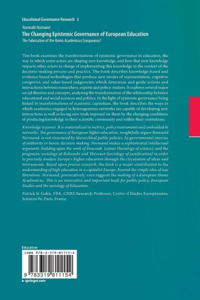 Knowledge is power. It is materialized in metrics, policy instruments and embedded in networks. The governance of European higher education, insightfully argues Romuald Normand, is not structured by hierarchical public policies, by governmental exercise of authority or heroic decision making. Normand makes a sophisticated intellectual argument, building upon the work of Foucault, Latour (Sociology of science), and the pragmatic sociology of Boltanski and Thévenot (sociology of justification) in order to precisely analyse Europe's higher education through the circulation of ideas and instruments. Based upon precise research, the book is a major contribution to the understanding of high education in a capitalist Europe, beyond the simple idea of neo liberalism. Normand, provocatively, even suggests the making of a European Homo Academicus. This is an innovative and important book for publicpolicy, European Studies and the sociology of Education. Patrick le Galès, FBA, CNRS Research Professor, Centre d'Etudes Européennes, Sciences Po, Paris, France
