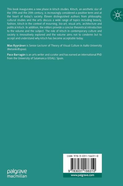 Kitsch: From Rejection to Acceptance: On the Changing Meaning of Kitsch in Today's Cultural Production (Introduction).- PART I: Kitsch and Life.- Kitsch in the Hypermodern Era.- Sailing the Seas of Cheese.- Kitsch in Relation to Loss.- Old Tricks for a New Dog: Toilet Humor, Politicized Kitsch and the Trump Presidency.- PART II: Kitsch and Culture.- Kitsch and Architecture.- From Fashion as Kitsch to Kitsch in Fashion: Redefining Beauty and Taste Today.- Digital Kitsch. Art and Kitsch in the Informational Milieu.- Kitsch, Beauty and Artistic Practice.- Biokitsch in Art: And the Survival of the Prettiest.- Epilogue: What Next?