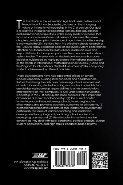 This third book in the Information Age book series, International Research on School Leadership, focuses on the changing nature of instructional leadership in the 21st century. Our goal is to examine instructional leadership from multiple educational and international perspectives. Unlike many leadership books that focus on conceptualizations and personal narratives, the seven chapters provide empirical evidence of how instructional leadership is evolving in the 21st century. From the effective schools research of the 1980s to today's relentless calls for improved student performance, attention has focused on the instructional leadership roles and responsibilities of school principals, headteachers, and educational system leaders. The emphasis on student performance has gone global as evidenced by highly-publicized international studies, such as the Trends in International Math and Science Studies (TIMSS) and the Program for International Student Assessment (PISA), comparing student achievement in different countries. These developments have had substantial effects on school leaders, especially building-level principals and headteachers. Rather than being the only ones overseeing school improvement aimed at increasing student learning, many school administrators are distributing leadership responsibilities to other administrators and teachers on their campuses. To fully understand instructional leadership in the 21st century, the book examines three important dimensions of instructional leadership: (1) the current context for turning around low-performing schools, increasing teacher effectiveness, and providing equitable outcomes for all students, (2) international perspectives of instructional leadership development, particularly the value of teacher coaching and leadership development for aspiring and practicing school leaders in a developing country, and (3) the obstacles instructional leaders confront as they deal with fiscal constraints, political pressure, diverse student populations, and high-stakes standards-based reforms.