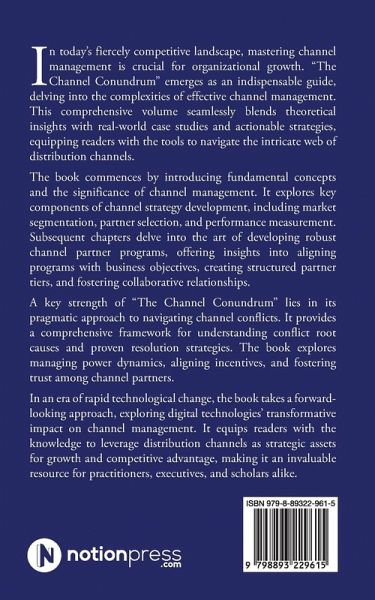 In today's fiercely competitive landscape, mastering channel management is crucial for organizational growth. "The Channel Conundrum" emerges as an indispensable guide, delving into the complexities of effective channel management. This comprehensive volume seamlessly blends theoretical insights with real-world case studies and actionable strategies, equipping readers with the tools to navigate the intricate web of distribution channels. The book commences by introducing fundamental concepts and the significance of channel management. It explores key components of channel strategy development,…mehr