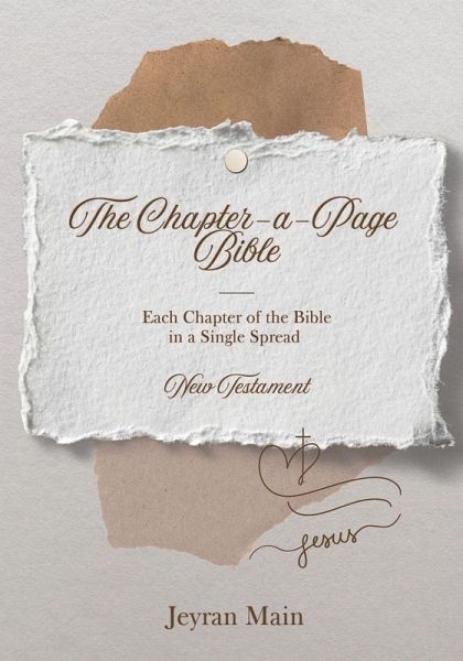 The Chapter-a-Page Bible: New Testament by Jeyran Main is a revolutionary approach to reading and understanding Scripture. Each spread distills an entire chapter of the New Testament into a single, easy-to-read page, highlighting the chapter's theme, key verses, theological insights, reflection questions, and practical applications. This book is perfect for everyone-from new believers and those just beginning to read the Bible, to lifelong readers who want a deeper understanding but sometimes find the text difficult to interpret. Readers can explore a chapter of Scripture and immediately turn to a clear, engaging explanation that brings the Word to life. Historical context, Christ-centered insights, and practical applications are woven together to help readers not only understand Scripture but apply it to everyday life. Drawing from respected biblical scholars while remaining approachable and devotional, The Chapter-a-Page Bible bridges the gap between academic commentary and practical daily reading. Ideal for personal study, small groups, or devotional time, it transforms the New Testament into an accessible, meaningful, and life-changing experience-one chapter at a time.